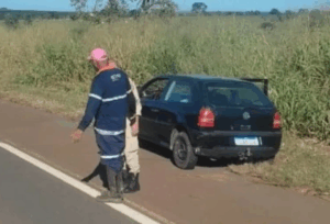 Apesar do impacto, o jovem ainda conseguiu frear o carro antes de perder a consciência, o que evitou um acidente de maiores proporções na rodovia.