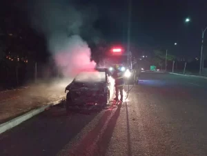 O Corpo de Bombeiros foi acionado e conseguiu conter completamente o fogo, evitando que o veículo fosse consumido por completo. Ninguém ficou ferido.