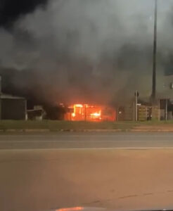 Imagens encaminhadas ao Campo Grande News pelo canal Direto das Ruas mostram a estrutura, utilizada por taxistas como abrigo entre as corridas, completamente em chamas. O vídeo revela labaredas altas e intensa fumaça se espalhando pela região.