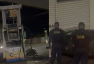 Motorista embriagado bate carro em bomba de posto de combustível e foge em Campo Grande