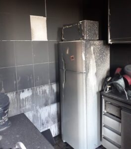 Fogo destruiu parte da cozinha durante a madrugada; ninguém ficou ferido.