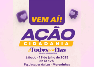 Neste sábado, 19 de julho, das 8h às 17h, o Parque Jacques da Luz, no bairro Moreninhas, em Campo Grande, será palco da Ação Cidadania #TodosPorElas pelo Fim do Feminicídio. O evento integra uma ampla mobilização social promovida pelo Sistema Fiems, TV Morena, Assembleia Legislativa, Tribunal de Justiça e Governo do Estado de Mato Grosso do Sul, com apoio de mais de 90 instituições públicas e privadas.