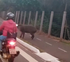 O flagrante ocorreu na região do Parque dos Poderes e foi divulgado pela página Campo Grande Mil Grau. Nas imagens, um casal em outra motocicleta reduz a velocidade para registrar o animal atravessando próximo à faixa, mas um terceiro condutor passa em alta velocidade, assustando a anta.