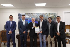 O presidente do Tribunal de Justiça de Mato Grosso do Sul (TJMS), desembargador Dorival Renato Pavan, recebeu na tarde desta quarta-feira (13 de agosto), em seu gabinete, a visita do presidente da Associação dos Municípios de MS (Assomasul), Thalles Henrique Tomazelli, prefeito de Itaquiraí, acompanhado por membros da diretoria da entidade.