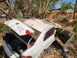 Perseguição policial termina com carro roubado capotado na BR-262, em Campo Grande