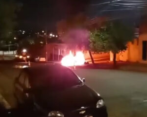Um carro ficou completamente destruído em um incêndio na noite desta quinta-feira (15), em Campo Grande. O caso aconteceu no cruzamento das ruas Joaquim Murtinho e Arthur Jorge, na região central da cidade.