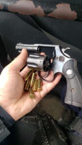 Com base nas informações repassadas pela denunciante, os policiais realizaram buscas na região e localizaram o homem na Rua Braz Clementino Mendonça, nas proximidades de um supermercado. Durante a abordagem, os militares encontraram um revólver calibre .32 na cintura do suspeito, com quatro munições — três intactas e uma picotada.