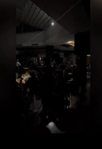 Ciente registrou momento da queda de energia na praça de alimentação. “Foi só o susto de ficar no escuro, mas logo voltou. A maioria dos locais manteve a calma, e alguns comércios ainda tinham geradores próprios”, relatou.