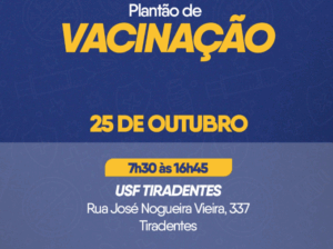 A Secretaria Municipal de Saúde (Sesau) divulgou o cronograma de vacinação para este sábado (25) em Campo Grande. O plantão será realizado das 7h30 às 16h45, na Unidade de Saúde da Família (USF) Tiradentes.