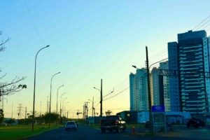 - Coxim e Três Lagoas (Norte e Bolsão): tempo mais quente, com mínimas de 22°C e máximas entre 31°C e 33°C, com sol entre nuvens.