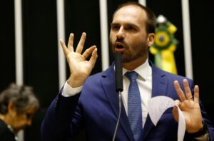 Eduardo é acusado de tentar intimidar o Supremo a arquivar a ação em que seu pai, o ex-presidente Jair Bolsonaro, foi condenado a 27 anos e 3 meses de prisão por tentativa de golpe de Estado e outros crimes.