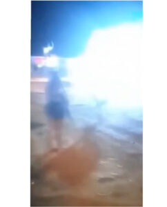 Durante o ataque, um dos integrantes do grupo dirige ofensas aos policiais, proferindo xingamentos como: “Essa arminha de brinquedo, filho da puta” e “Seus bostas, seus merdas”, enquanto risadas de uma mulher podem ser ouvidas ao fundo.