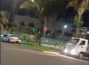 Carro derruba semáforo após invadir canteiro na Avenida Afonso Pena