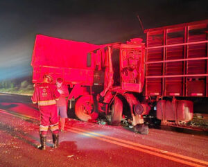 Ainda não há detalhes sobre a dinâmica da colisão, mas informações iniciais indicam que o caminhão transportava bois no momento do acidente.