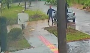 As imagens mostram que os suspeitos chegaram ao local por volta das 10h35, em um veículo Gol. Após estacionarem, os dois descem do carro e observam a movimentação da rua. Em seguida, um deles entra na residência, enquanto o comparsa permanece do lado de fora fazendo vigilância.