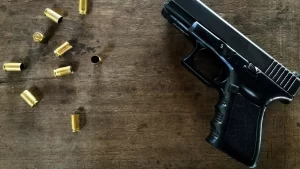 Uma testemunha entregou aos policiais um revólver da marca Taurus, contendo uma munição deflagrada e cinco intactas. Durante a vistoria no imóvel, foi localizado um furo no forro do teto, compatível com o tiro.