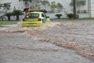 Na região central, vias importantes registraram acúmulo rápido de água logo após o início do temporal. A intensidade da chuva foi suficiente para causar enxurradas, invadindo ruas e ultrapassando o nível das calçadas.