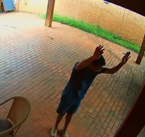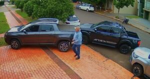 As imagens mostram que o ex-prefeito chegou às 13h44 em uma caminhonete, desceu do veículo, pegou uma arma e entrou no imóvel já apontando o revólver. O primeiro disparo foi registrado às 13h44min41s.