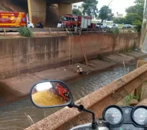A vítima caiu no leito do córrego da Avenida Ernesto Geisel. Informações iniciais indicam que o homem sobreviveu à queda.