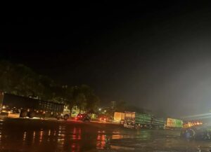 Após o impacto, o veículo de carga tombou e a soja transportada se espalhou pela pista, deixando o trecho completamente interditado nos dois sentidos e dificultando a circulação de veículos.