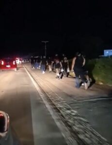 Sem conseguir avançar no congestionamento, parte do público que tenta chegar ao show do Guns N’ Roses, em Campo Grande, decidiu abandonar carros e ônibus e seguir a pé pela BR-262, na noite desta quinta-feira (9).
